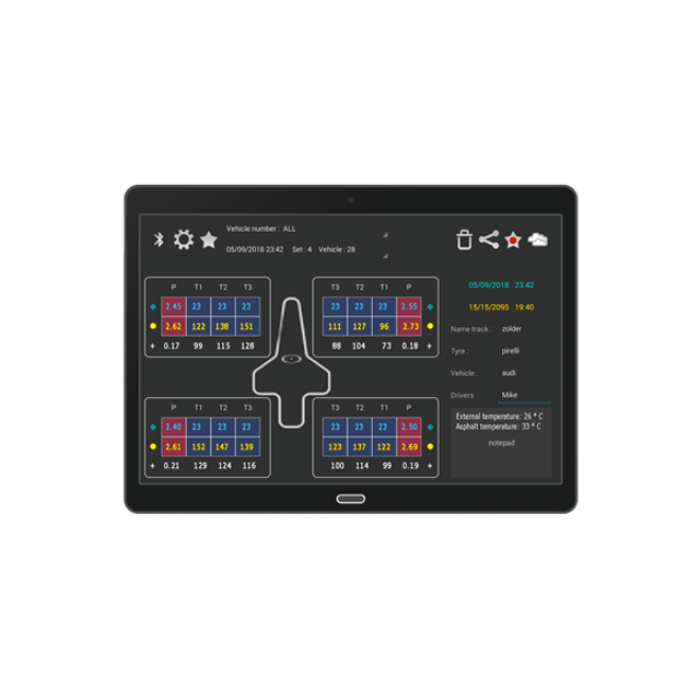 - Mesure jusqu'à 3 températures sur la surface du pneu,